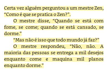 O mestre respondeu, ” Não, não. A maioria das pessoas se entrega a mil desejos enquanto come e maquina mil planos enquanto dorme.”