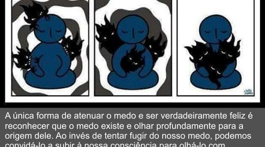 A única forma de atenuar o medo e ser verdadeiramente feliz é reconhecer que o medo existe e olhar profundamente para a origem dele. Ao invés de tentar fugir do nosso medo, podemos convidá-lo a subir à nossa consciência para olhá-lo com clareza e profundidade. Mais em Como encarar os medos de acordo com o Budismo