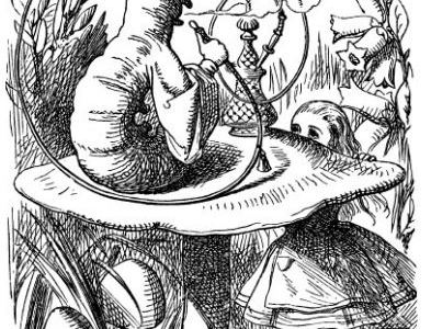A Lagarta e Alice olharam-se uma para outra por algum tempo em silêncio: por fim, a Lagarta tirou o narguilé da boca, e dirigiu-se à menina com uma voz lânguida, sonolenta.