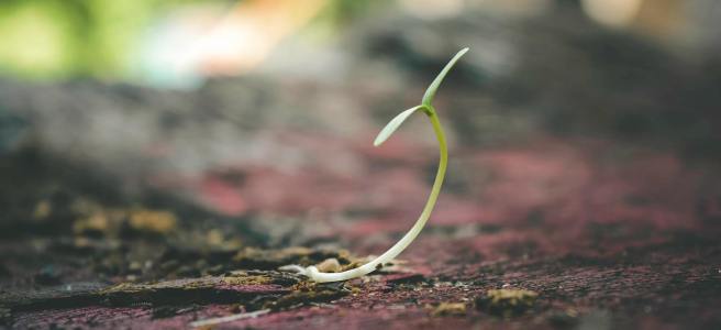 Um pedacinho de começo de uma planta brota de forma heróica entre o concreto e esse sentimento bom de sentir brota no meu coração.
